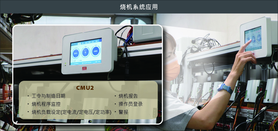 此外,為了方便使用者安裝于各場合,CMU2有兩種型態可選購,分別為獨立型與機柜型。針對不同應用有內建不同韌體與軟件,例如用于電源管理時所需的電壓電流調整,功率監控、日志,或是使用在燒機設備時所需的燒機時間,負載設定…等,讓使用者可快速地透過明緯最新設計的人機接口,進行系統的監視與控制。而為協助終端用戶達成智能工廠與工業自動化,CMU2除了配有觸控面板之外,更個別支持PMBus、CANBus或Modbus TCP通訊協議,讓管理者可透過有線或無線連網方式,達成近、遠程操作。