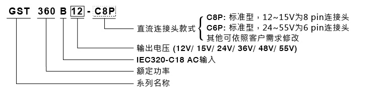 GST360B系列:360W Class II 高可靠工業級節能適配器(Level VI)