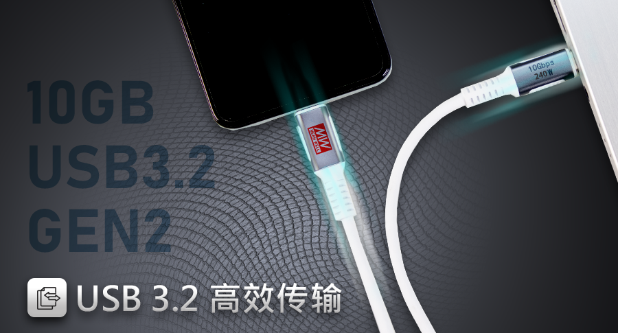 該產品采Type C to C設計, USB3.2 GEN2除了滿足48V/5A最大充電功率外,更具備10Gbps大量數據傳輸能力。此外,本產品適用于多種電子裝置的音源與影像數據傳輸,例如計算機、平板、行動硬盤、虛擬VR眼鏡…等。 具備快速充電,可同時傳輸大量數據的Type C充電/傳輸線,將是您工作或娛樂上的最佳選擇。