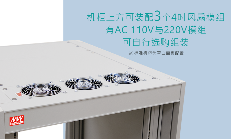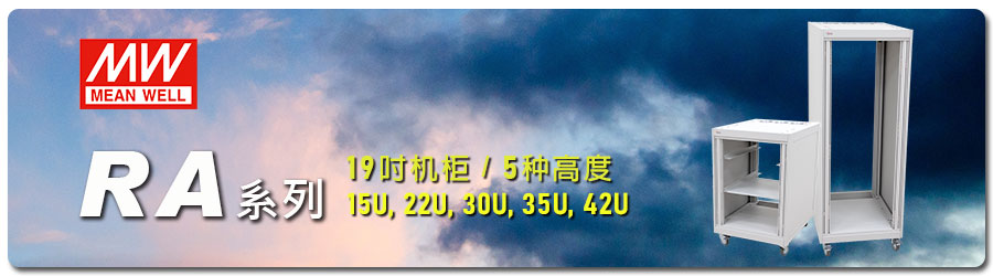 RA 系列為產業 19 吋標準機柜,有 15U~42U 一共 5 種高度供選擇,已經大量與明緯電源供應器 3+N 全產品線搭配使用;另有支架、支撐板、通風板、空白面板與散熱風扇組等配件滿足客戶安裝需求,產品適用于系統電源、服務器、影音控制、監控系統及儲存裝置。