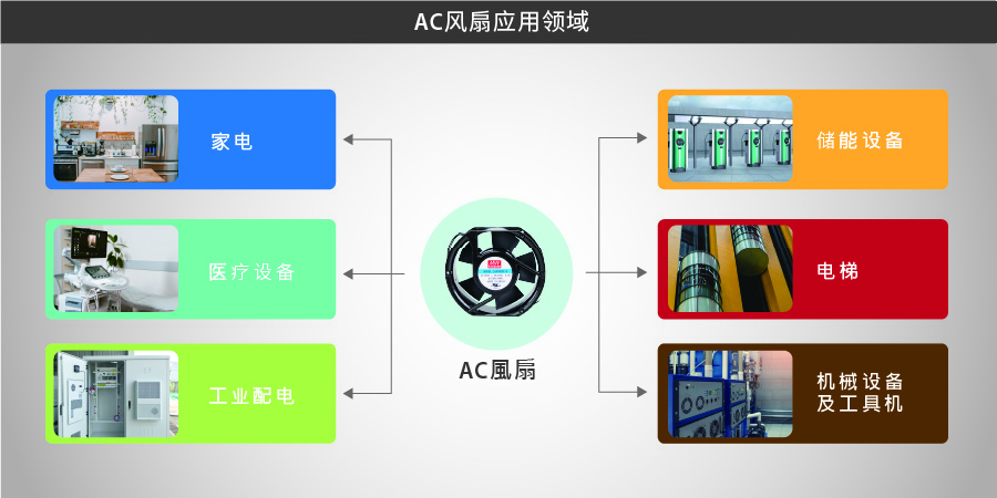 PowerNex 交流散熱風扇使用滾珠軸承,通過 UL 507 認證標準,亦符合歐盟 CE 規范,且經過多項可靠度驗證,產品長時間使用安全可靠;可應用于家電、醫療、工業配電、儲能、電梯、機械設備、工具機等設備。