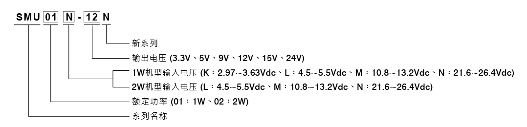 SMU01-N/SMU02-N 系列:1W/2W 非穩壓式 DC-DC 隔離轉換器