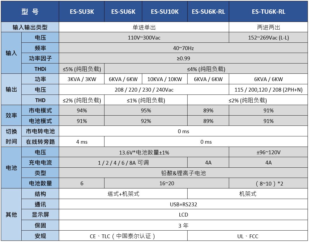 ES-SU/TU系列:3kVA~10kVA在線式不間斷電源系統