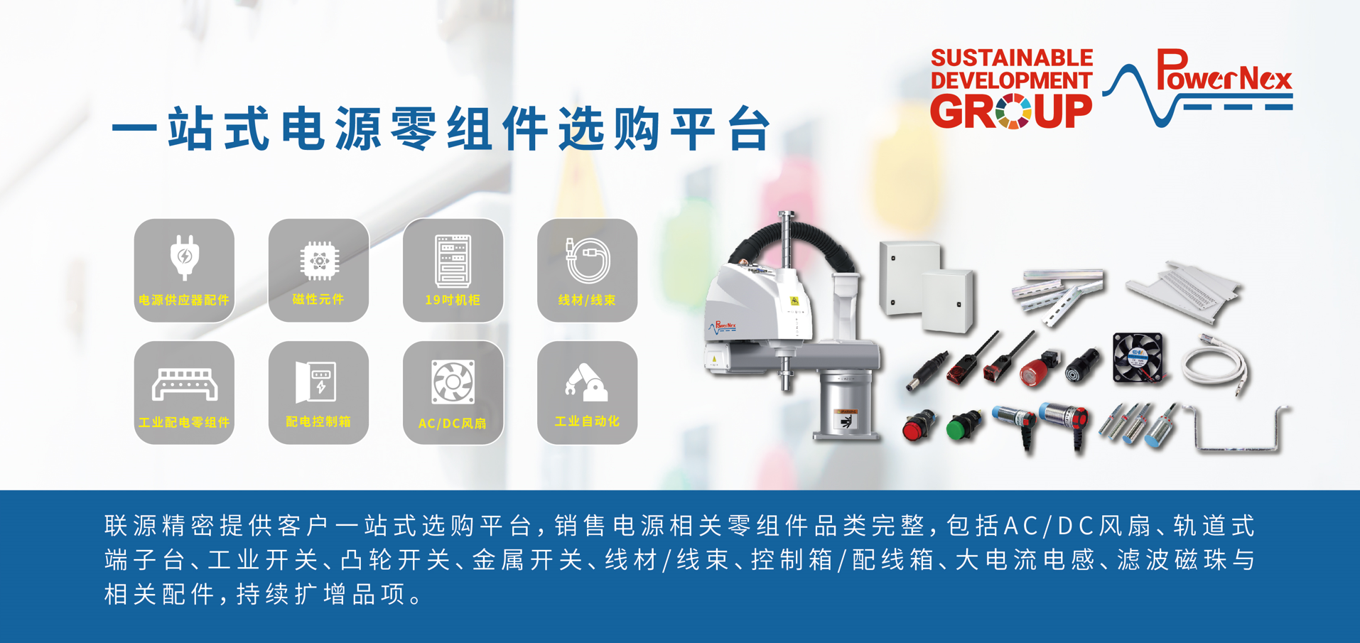 此次展會,明緯同時也向觀眾展出了SDG集團旗下聯源品牌的電力電子零組件相關產品,包含風扇、端子臺、傳感器、電感、接地銅牌等等。