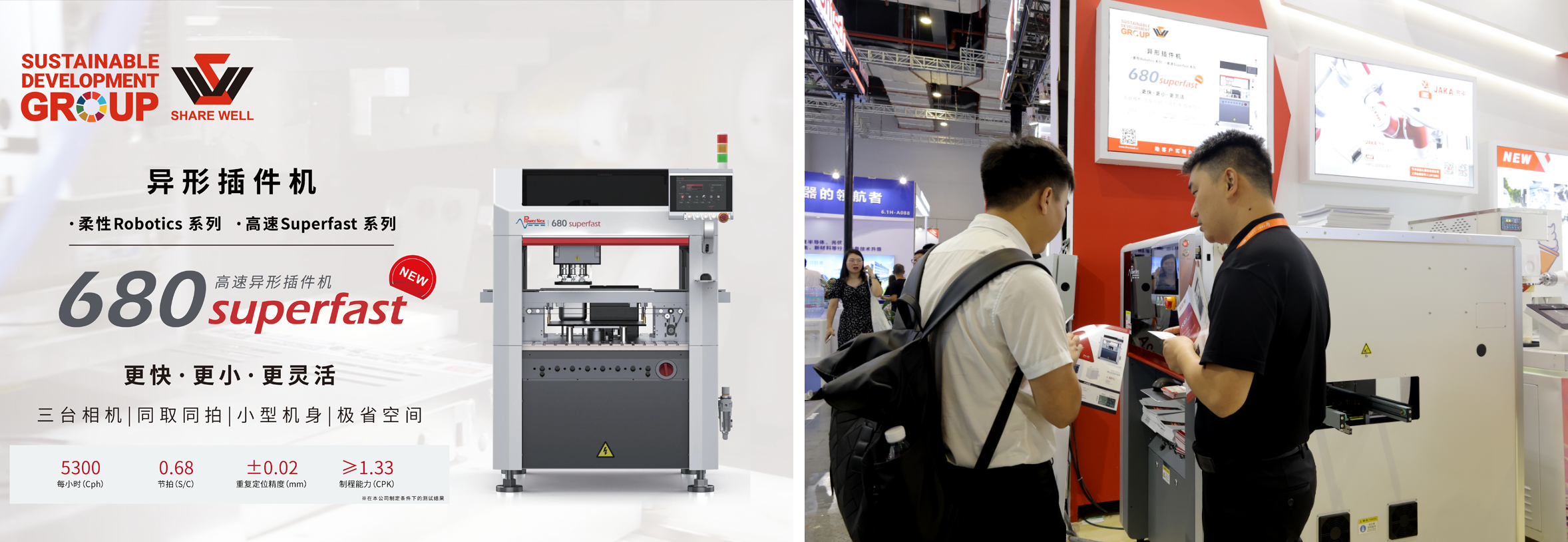 680 Superfast系列高速異形插件機采用龍門式結構,以機器視覺、運動控制和深度學習算法為核心,其精度、速度、靈活性和兼容性已達到行業領先水平。其具有更快、更小、更靈活以及三臺相機,同取同拍,小型機身,極省空間等特點獲得較多客戶的認可。