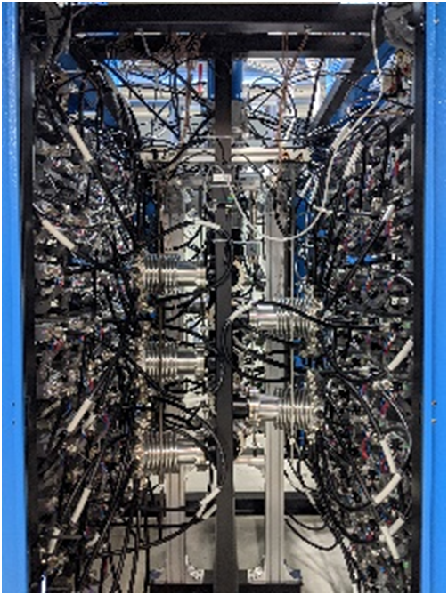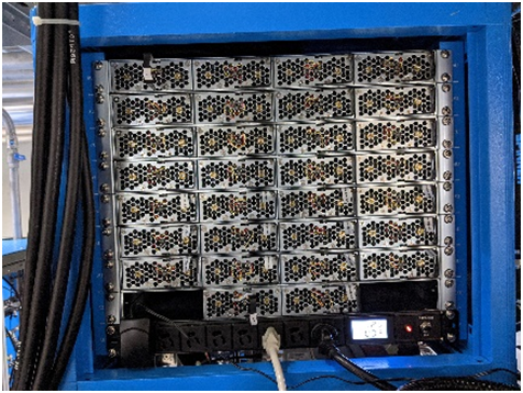 該標案規劃使用多套96kW之高功率電源系統(圖三),使用電源系統輸出的電力驅動全固態射頻功率放大器(Radio Frequency Power Amplifier)叢集(圖四)產生高頻能量,匯集高頻能量供應電子于趨近光速運行所需之能量(圖五),全部電源系統最大輸出直流功率將近800kW !