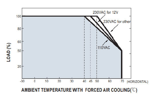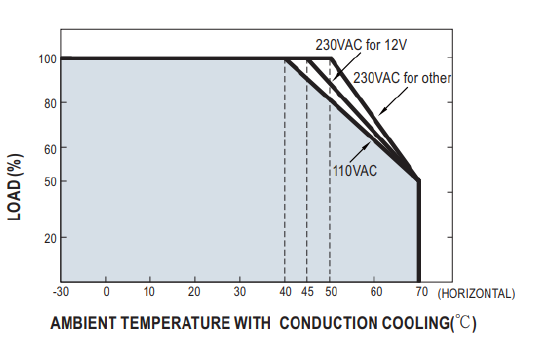 要考慮的另一個重要因素是環境溫度。對于所有冷卻方法,如果系統環境溫度達到40-50oC,則用戶應根據降額曲線自行限制UHP-1000的使用功率,必要時建議升級產品功率,以提升系統信賴性。