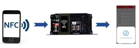 明緯近期在 NPB-450 系列的基礎上推出 NPB-450-NFC 機型,可搭配手機NFC功能,充電器不管有/無 AC 輸入狀態下,均可使用明緯 APP 進行近距離感應調整充電參數。