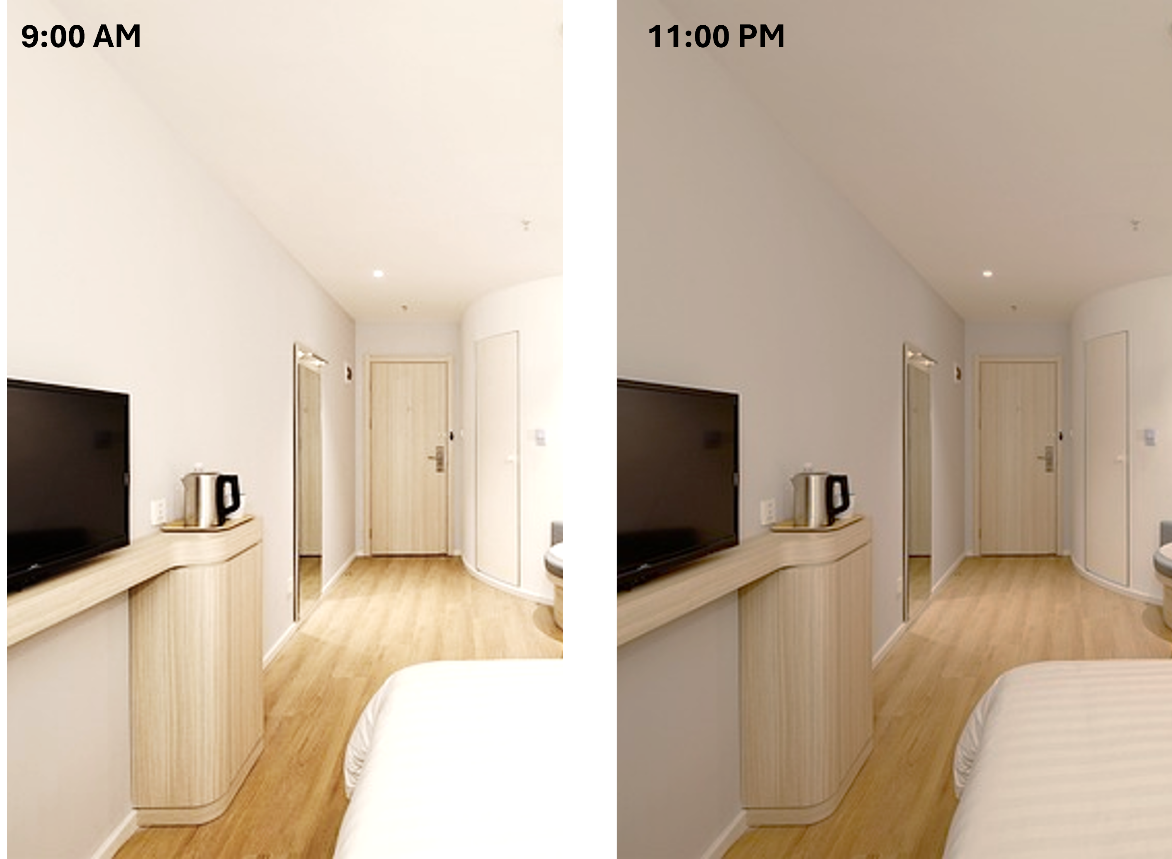 該功能允許 LED 驅動器根據外部KNX 定時器所給予的時間,自動調整亮度(高達 10 steps/天),無需額外的控制命令。用戶可選擇在自動調光過程中手動介入,透過發送指令來決定系統是否應該作出反應,從而提供更大的靈活性。